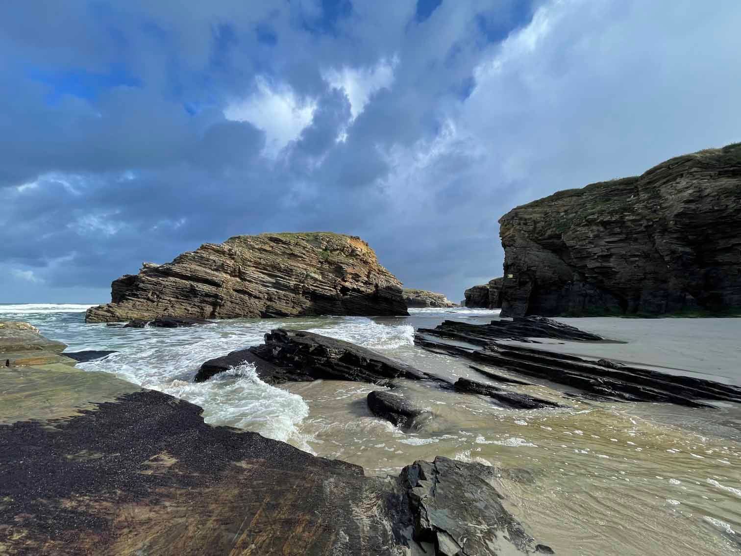 Schlechtes Wetter, das heisst wir haben Zeit für einen kleinen Einkauf, finden in Ferrol auch eine V/E-Station und machen uns dann auf den Weg nach Caion. Der ausgewählte Stellplatz, auf park4night vielversprechend aussehend, entspricht nicht unseren Erwartungen. Wir füllen hier aber noch unseren Wassertank auf und an der Beach von Caion stillen wir unseren kleinen Hunger.