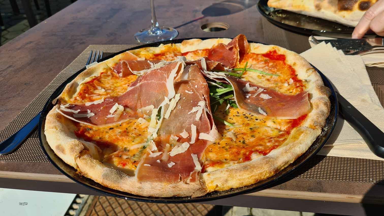 Zu Fuss geht's über die Ponte Maria Pia (gebaut von Gustav Eiffel) und hier suchen wir uns eines der unzähligen Restaurants aus für unser Mittagessen. Für uns ein wichtiges Auswahlkriterium - wir wollen unsere Bikes nahe parkieren können. Wir treffen in allen Belangen eine gute Wahl.