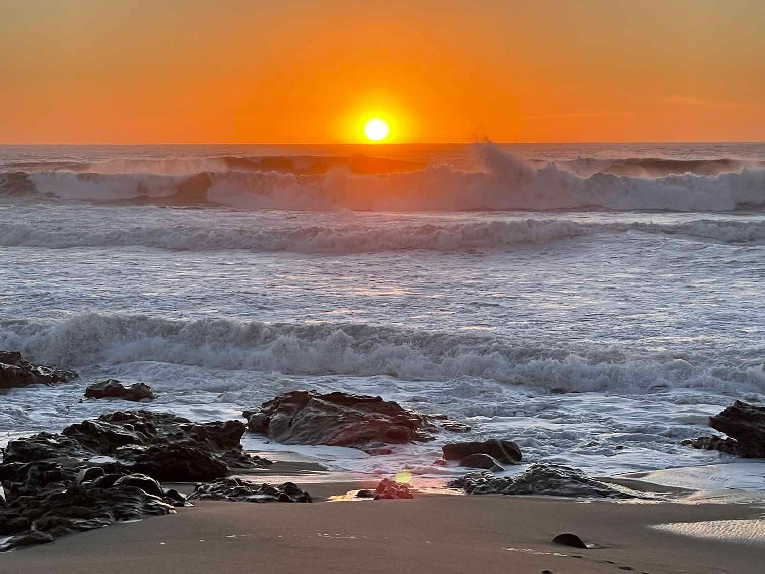 Aber dann müssen wir wieder ab ans Meer. Das Schauspiel der Wellen ist einfach beeindruckend und der schöne Sonnenuntergang das Tüpfelchen auf dem i.