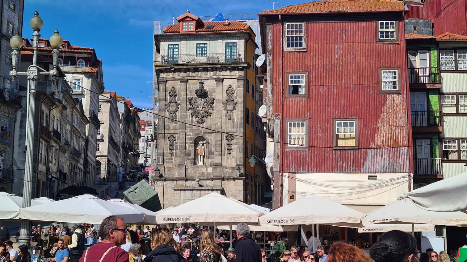Aber auch sonst ist die Stadt heute voller Menschen. Wir fahren mit den E-Bikes dem Meer und dem Duoro entlang in die Stadt. Auf dem super ausgebauten Radweg sind viele unterwegs und noch mehr Leute flanieren und joggen auf dem Fussgängerweg. In der Stadt wird es dann etwas chaotischer, aber wir sind ja nicht in Eile.