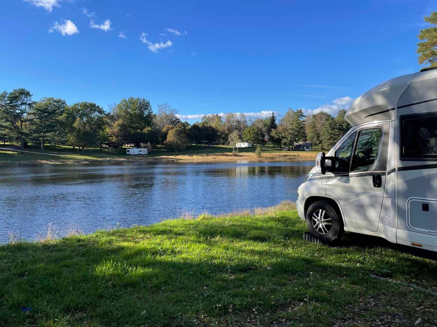 Ups, sind wir in Schweden gelandet? Nein spontan und zufällig am Lac de Feyt nahe der Dordogne. Wir können noch lange die Abendsonne geniessen.