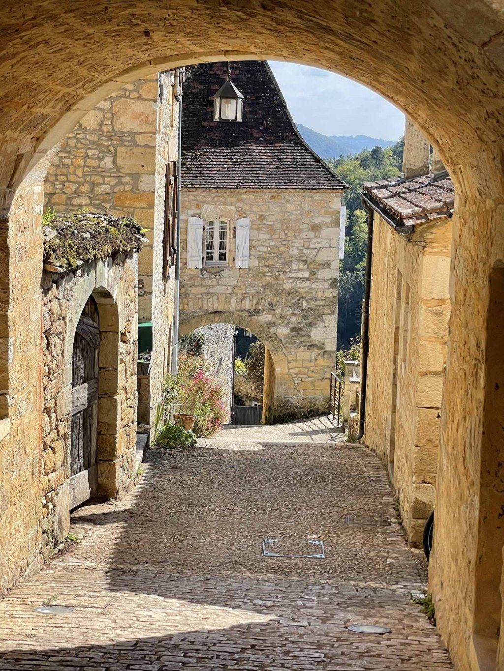 Die Aussicht von Domme über die Landschaft und die Dordogne.
