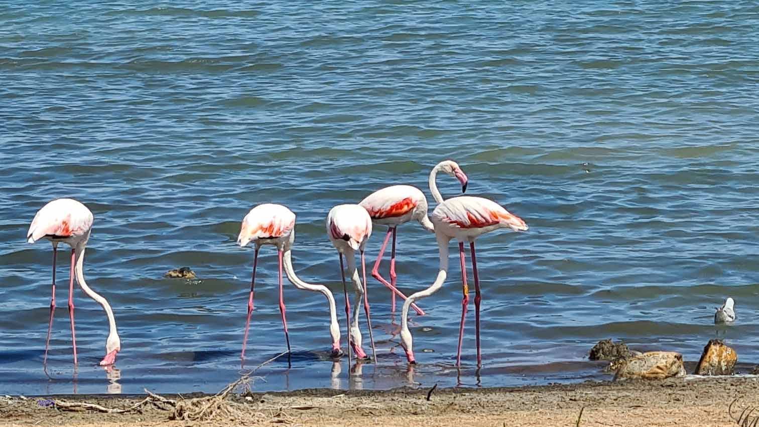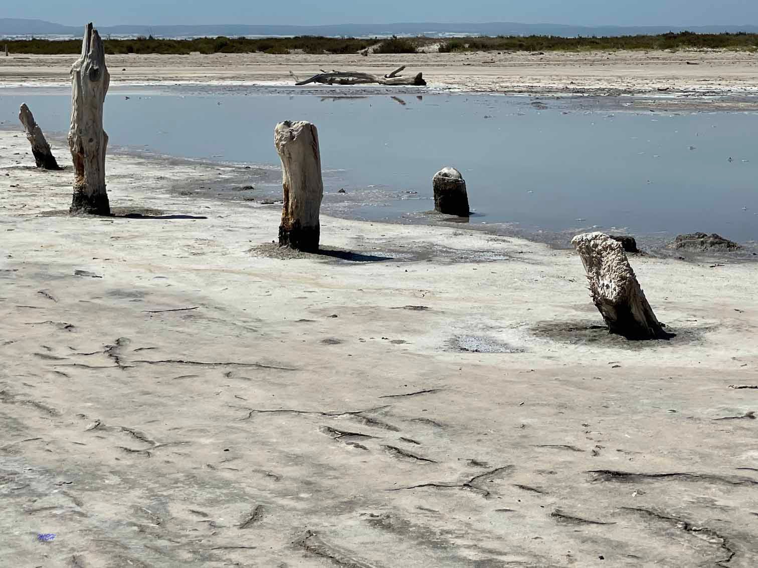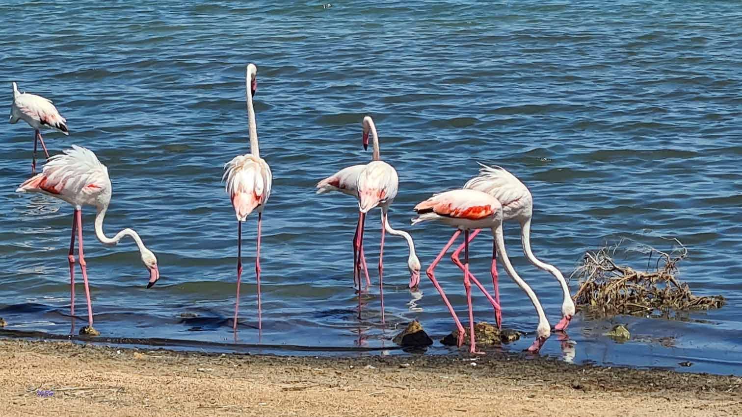 Der riesige Camper Park La Ribera in San Javier hat wenigstens ein paar Schattendächer und es weht ein herrlicher Wind. Das passt. Nach einem kleinen Mittagsimbiss und etwas Siesta fahren wir mit unseren Bikes dem Strand entlang Richtung Salinen. Ein toller Bike-Ausflug.