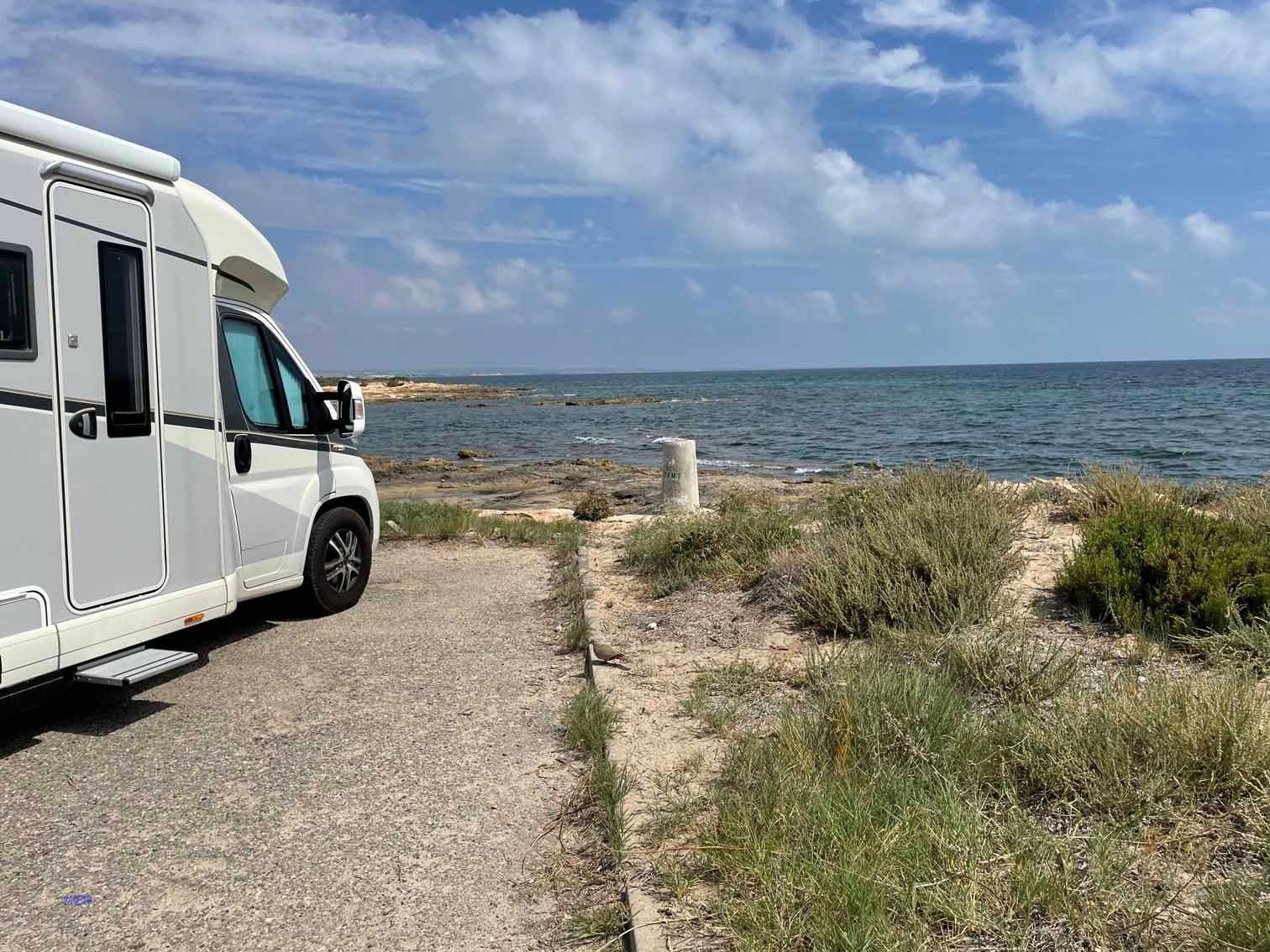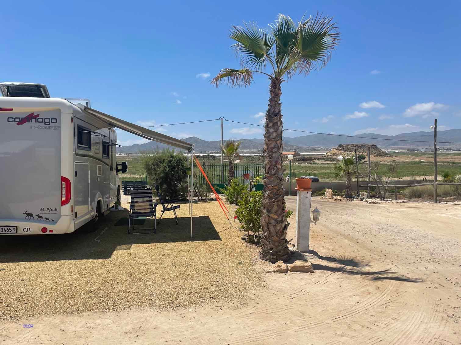 Ruinen, ärmliche Behausungen, eigentliche auch ärmliche Dörfer, wunderschöne Küstenabschnitte, mehrer Quadratkilometer Plastikfelder, riesige Hotelanlagen, mondäne Villen, Massen von Menschen an den Stränden, Massen von parkierten Autos (jede noch so kleine Lücke wird ausgenutzt), zwischendurch etwas Kultur, volle Campingplätze und zum Schluss ein kleiner ruhiger Stellplatz. Halt nicht am Meer, aber schöne Aussicht, Ruhe und alles da, was man braucht. Wir kennen den Platz von unserer Reise 2016 her. Mehrere Plätze sind noch frei, wir können uns einfach einen aussuchen. Perfekt!