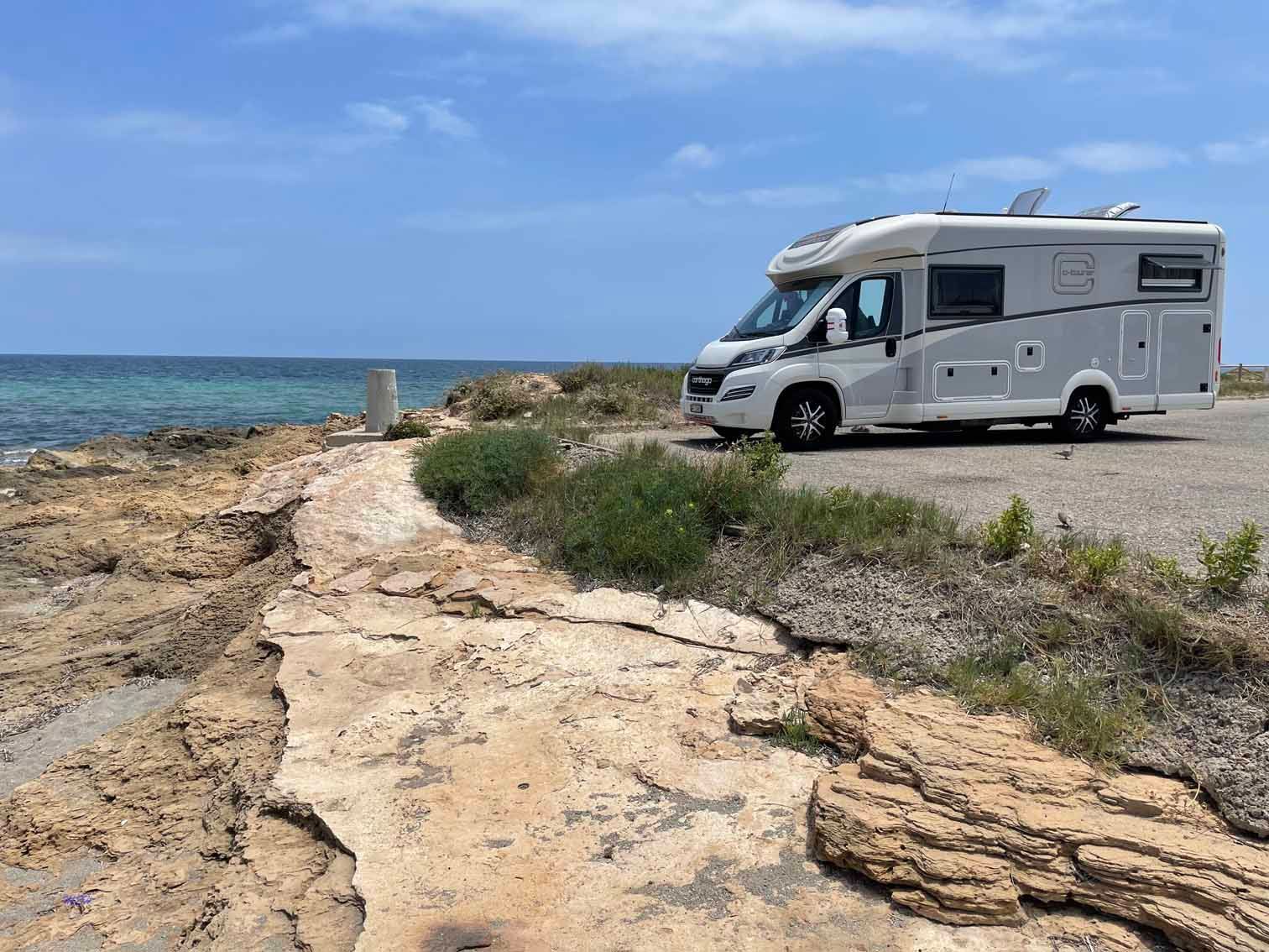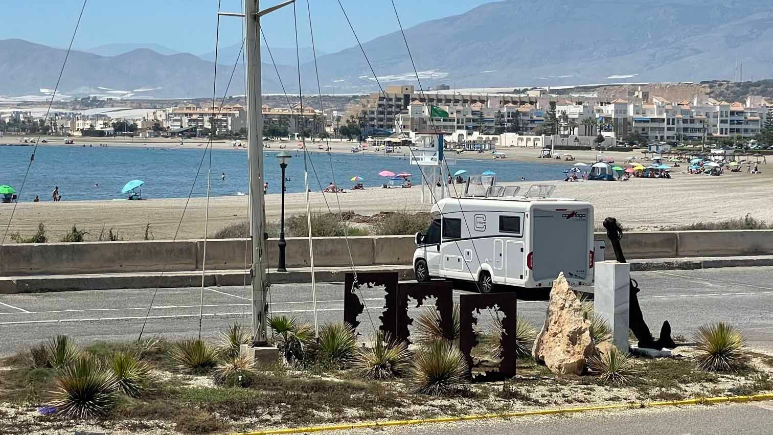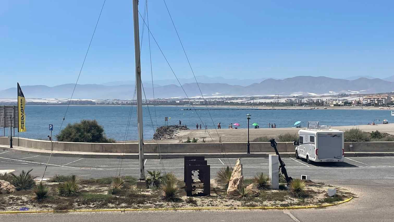 Über eine aussichtsreiche Bergstrasse erreichen wir wieder die Küste. Die Bucht in der wir 2016 standen ist verlassen und leer, da kann man nicht mehr übernachten. Die nächste Bucht, die einen Stellplatz verspricht sieht alles sehr heuntergekommen und schmuddelig aus. So landen wir auf dem Stellplatz Playa Tortuga nahe Aguilas. Hier hat sich seit unserer Besichtigung 2018 einiges getan. Der Platz bietet 32 Fahrzeugen eine Übernachtung und ist bis am Abend restlos voll. Neben uns werden sogar auf einer Parzelle gleich 2 Büsli eingewiesen, Abstand zweischen uns noch gerade ca. 40 cm !! Die Leute schlagen die Köpfe an unseren offenen Fenstern an! Unsere E-Bikes ausladen - unmöglich! So haben wir uns das nicht vorgestellt, aber den Betreiber lässt das kalt. Wir räumen alles auf und wenden unser Fahrzeug um so wenigsten einen Abstand zu schaffen.