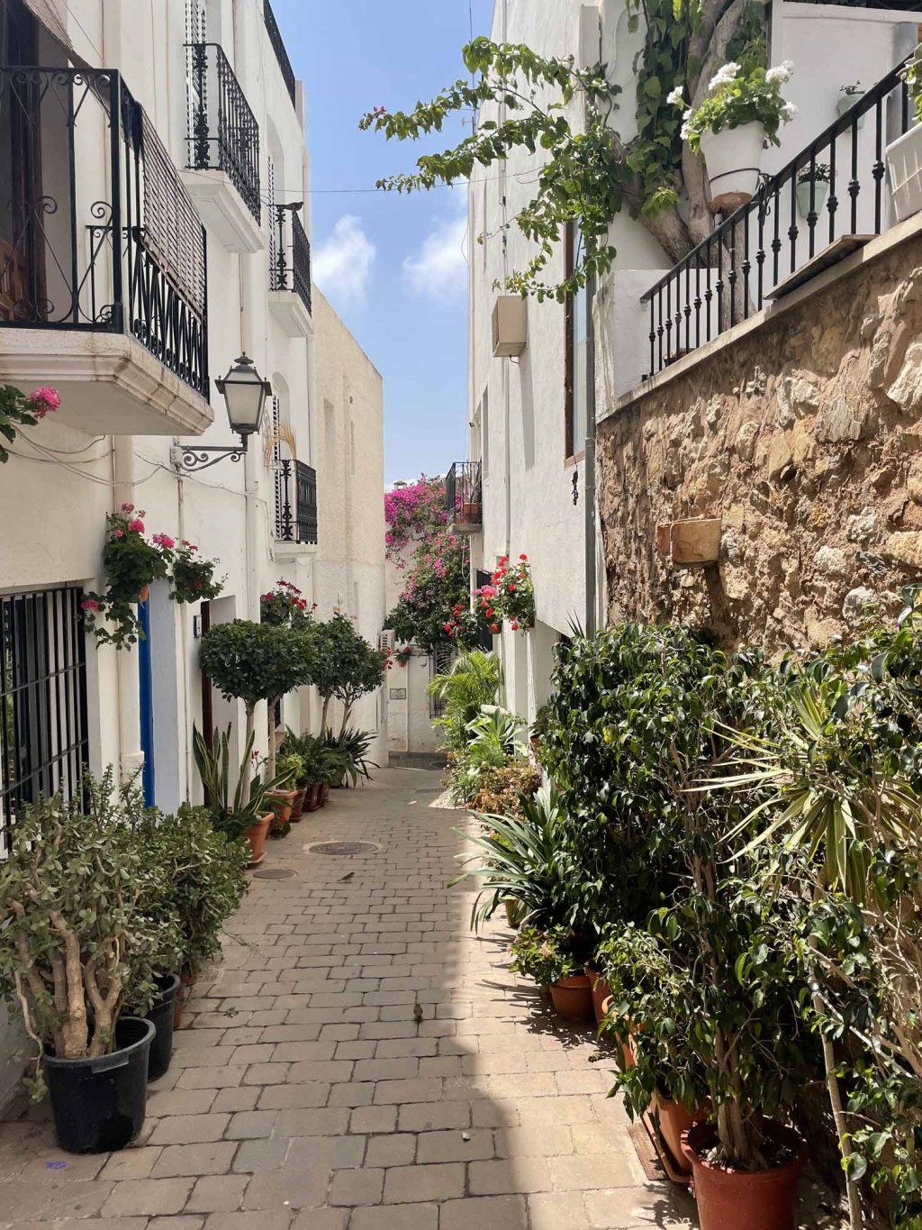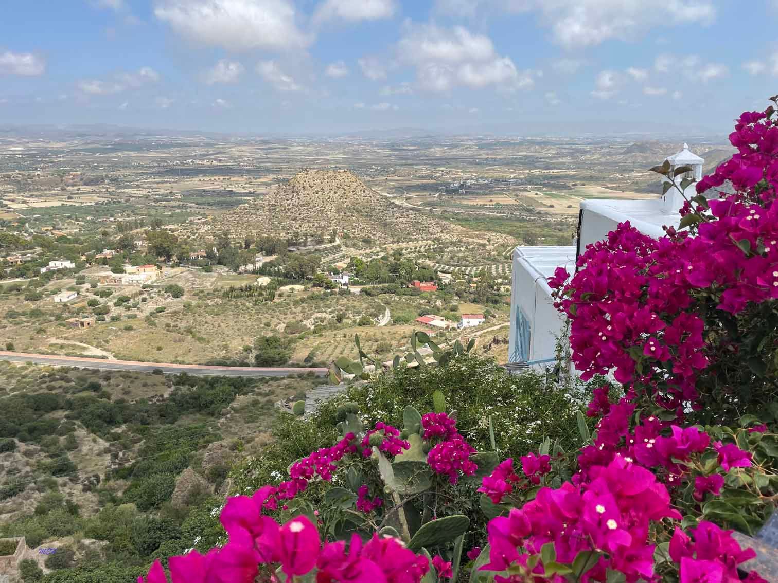 Unser grobes Ziel von heute: so ungefähr irgendwo nahe dem Naturpark Cabo de Gata. Wie schon recht oft auf dieser Reise stellen wir spontan den Blinker und fahren hoch nach Mojacar. Uns gefällt das kleine Dorf sehr gut und das Mittagessen mundet uns bei dieser herrlichen Aussicht erst recht.