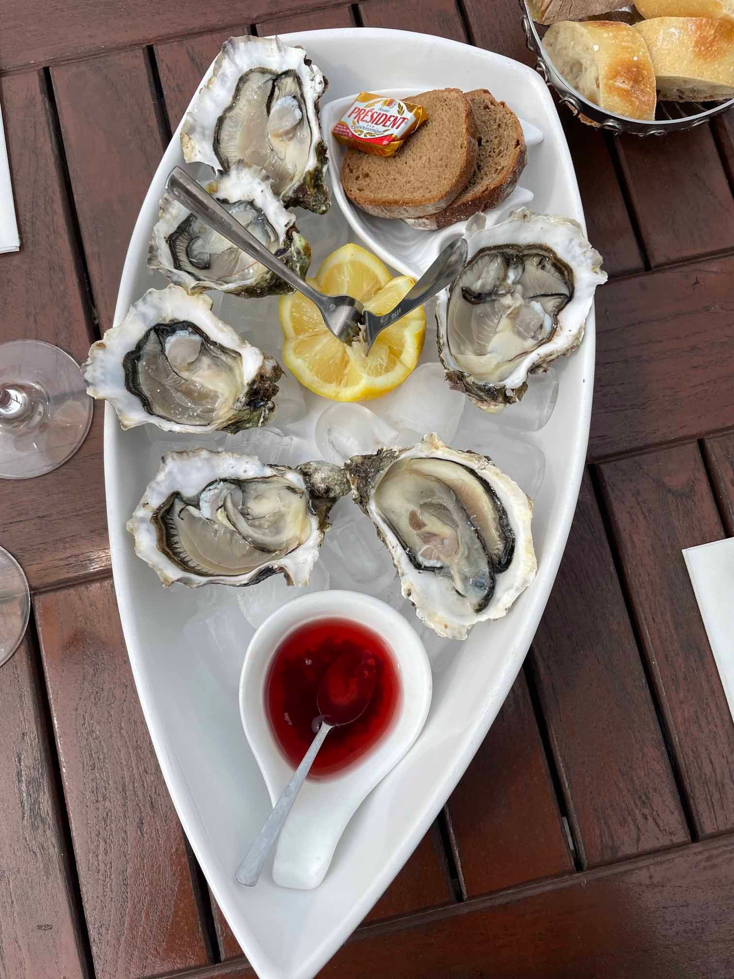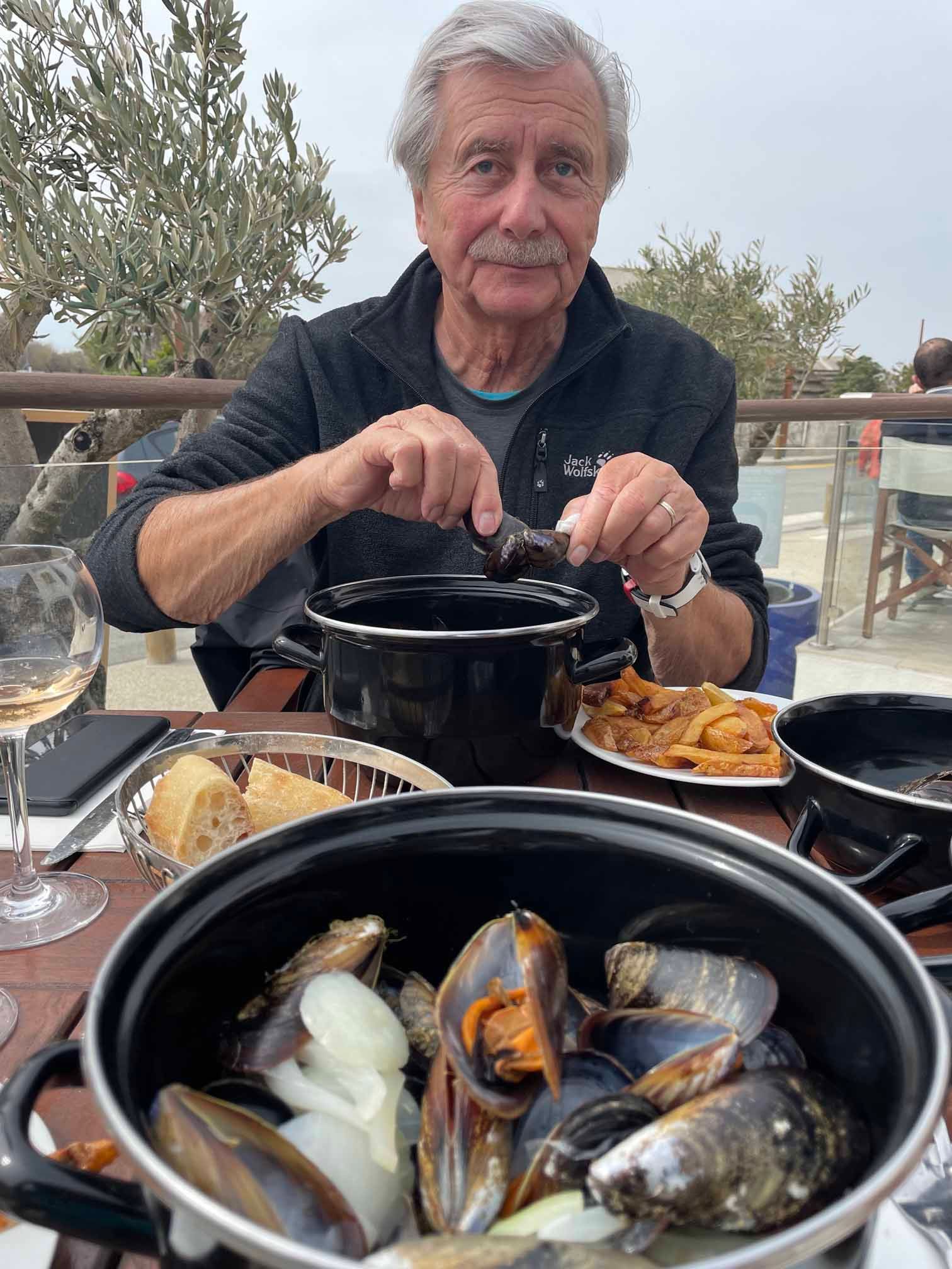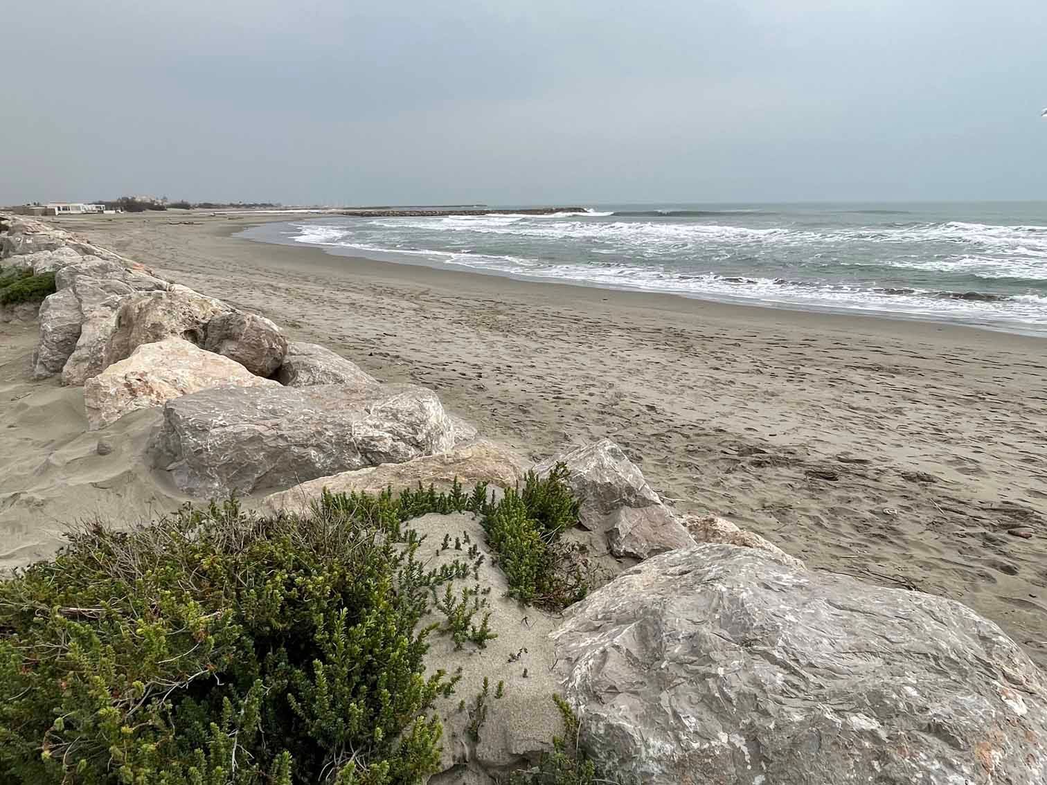 Wir starten faul in den Tag. Und der Tag bleibt auch faul. Die Sonne lässt sich Zeit. Der Vormittag bleibt kühl und wir haben gar keine Lust die E-Bikes auszuladen. Gegen Mittag drückt die Sonne durch die Wolken und wir machen uns zu Fuss auf nach Saintes-Maire-de-la-Mer zum Mittagessen. Die Temperaturen sind mittlerweilen richtig angenehm und wir können draussen sitzen.