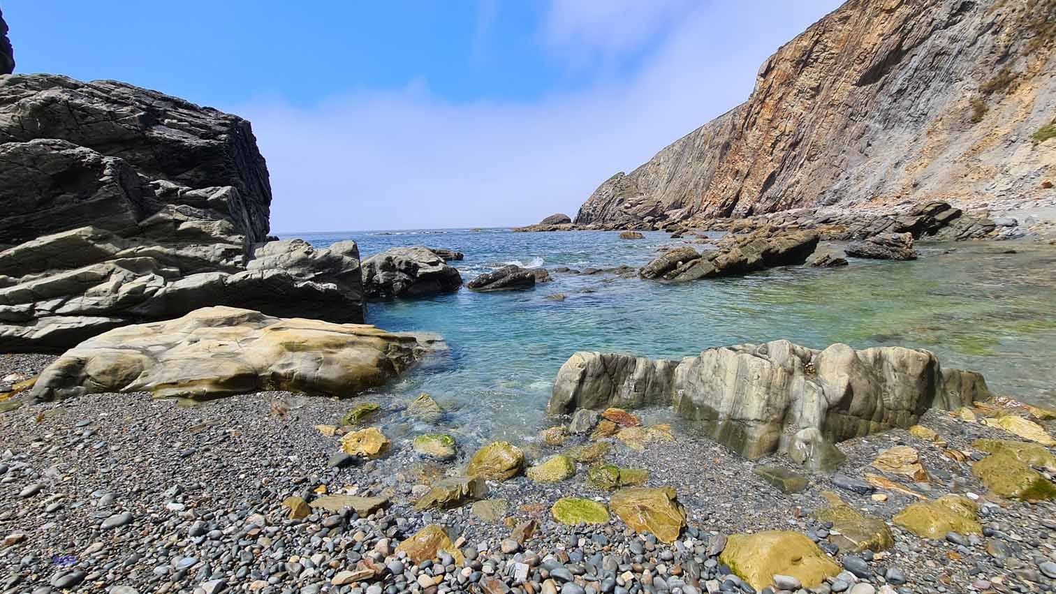 Nach einem kleinen Mittagsimbiss starten wir zu einer Küstenwanderung. Diverse sehr schöne Miradors liegen auf der Route. Auch zur Praia laufen wir noch hinunter. So wenige Menschen haben wir schon lange nicht mehr an einer Praia gesehen. Auch vorne beim Leuchtturm stehen zur Zeit nur zwei Womos. Wir bleiben hier. Einige Leute kommen zum Picknicken, die Walkinggruppe von Busto startet zu einer Fitnessrunde, zwei Herren treffen sich zu einem Schwatz und einige kommen nur um kurz die neblige Aussicht anzuschauen. Der Nebel ist nämlich auch hier gegen Abend wieder aufgezogen, aber uns stört das gar nicht gross.