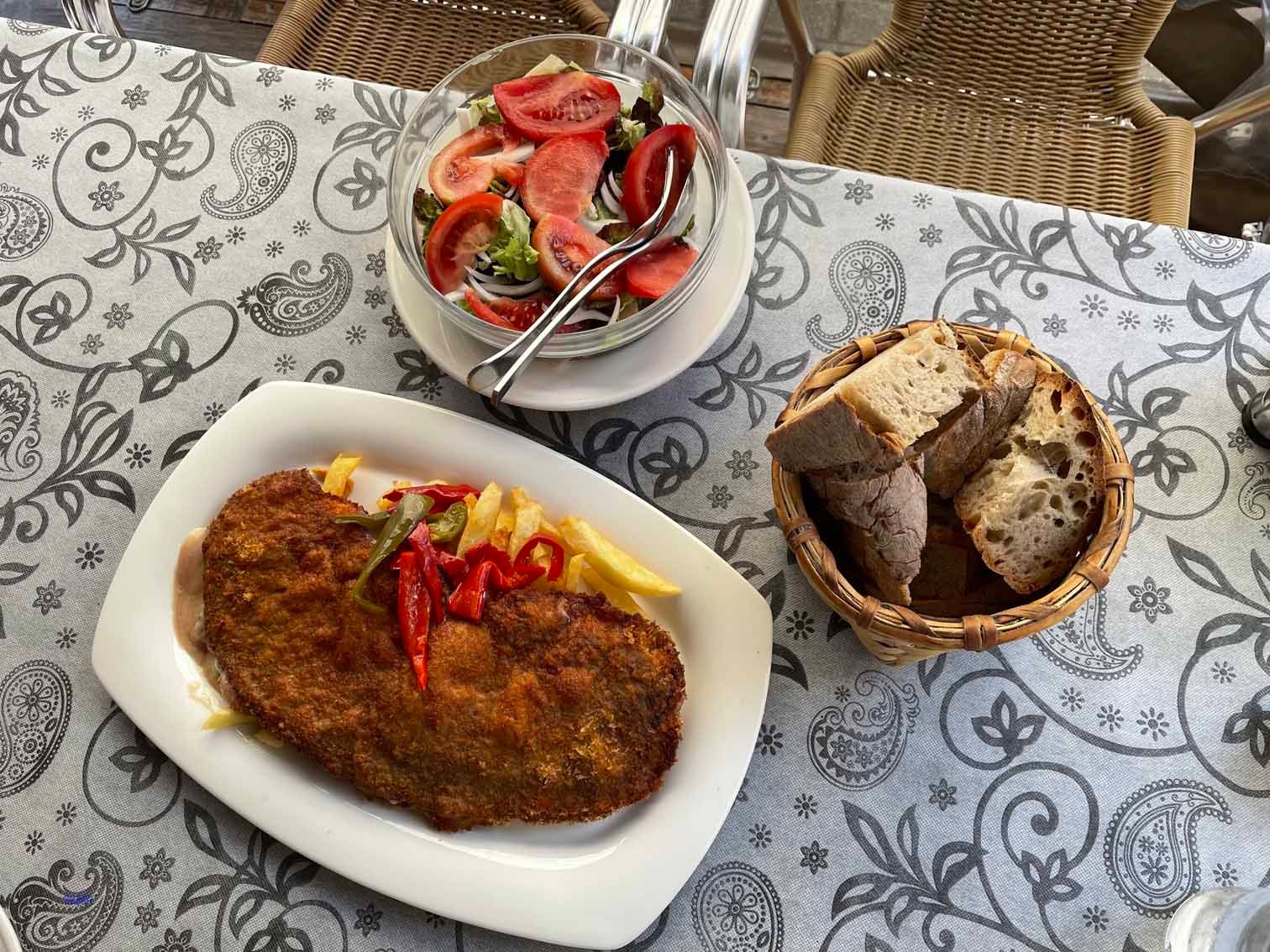 Während der wohlverdienten Siesta beginnen unsere Magen zu knurren. Sie haben ja auch seit dem Frühstück nichts mehr bekommen. So machen wir uns ans Kochen. Salat, Fleisch vom Grill und ein Stück Brot und das zu ungewohnt früher Zeit, bereits um 17.30 Uhr!