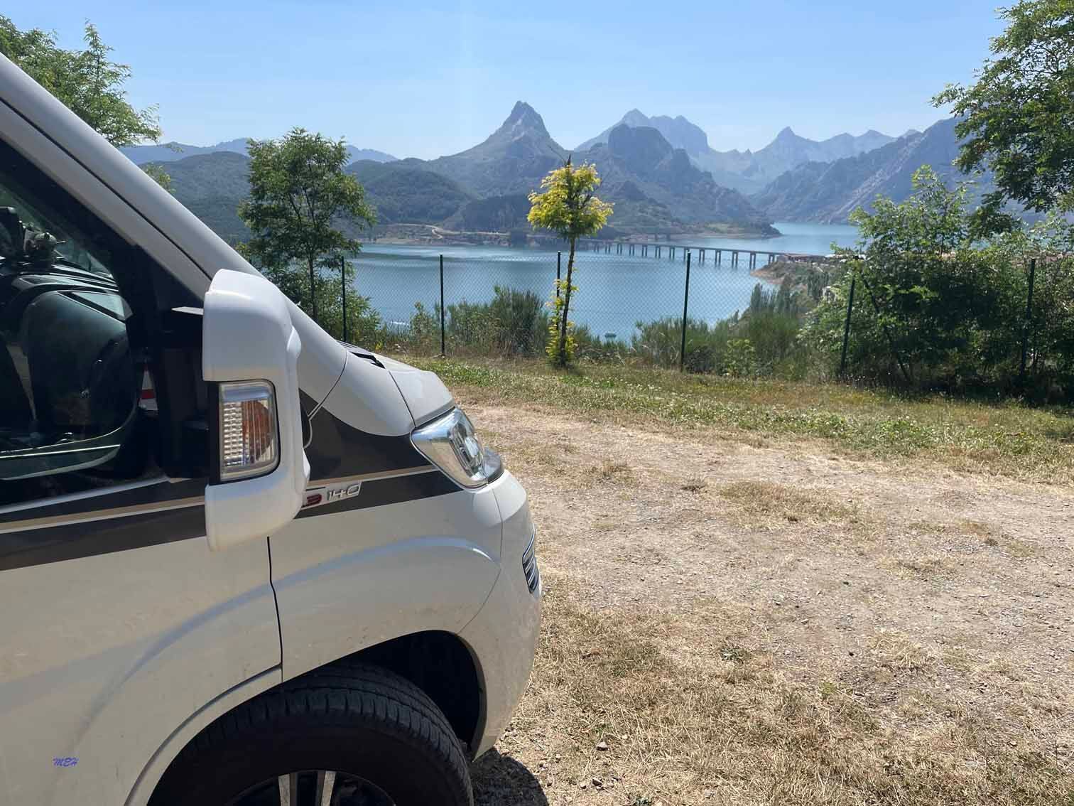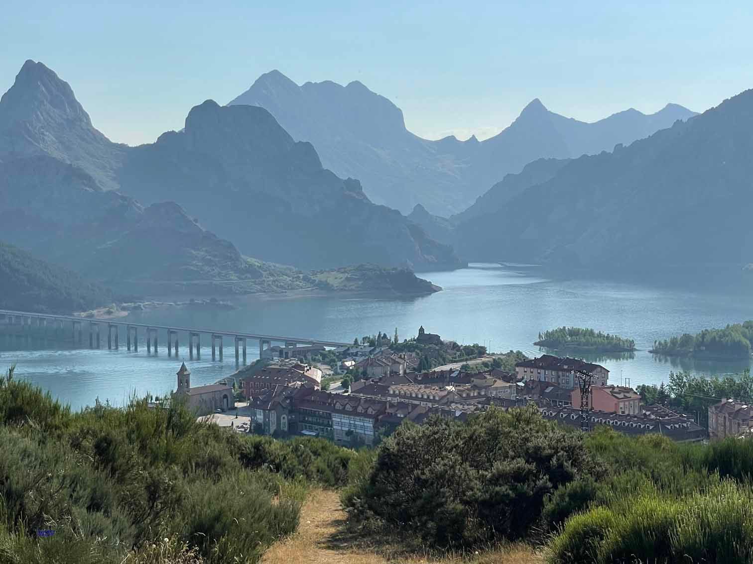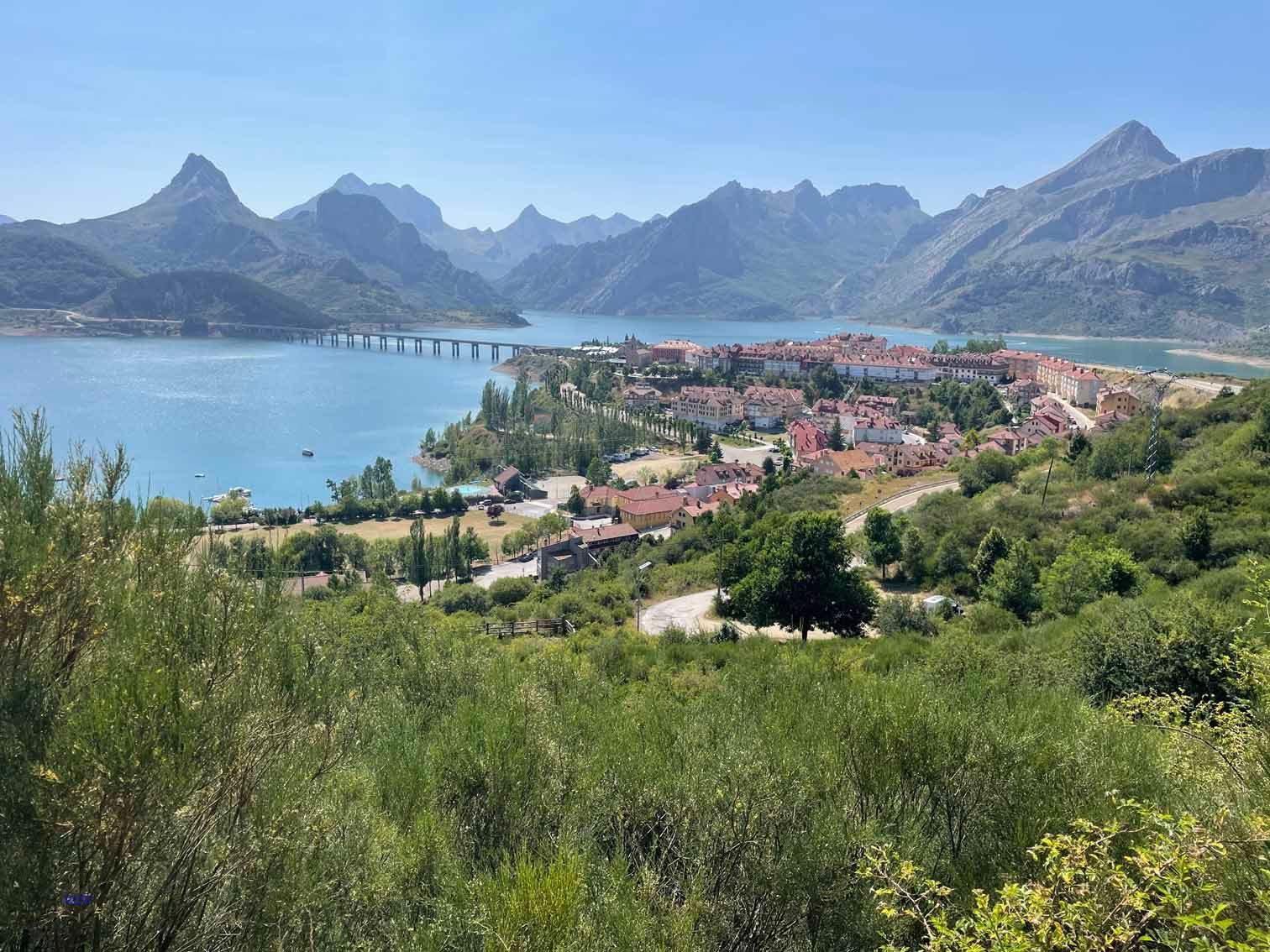 Den Tag beenden wir am Embalse de Riaño. Wir entscheiden uns heute für den Campingplatz etwas oberhalb von Riaño. Auf dem Stellplatz unten im Dorf ist es sehr heiss und campingartiges Verhalten ist nicht gestattet. Also eigentlich keine Sühle und kein Tisch. Hier oben weht ein leichter Wind und dies mit schöner Aussicht.