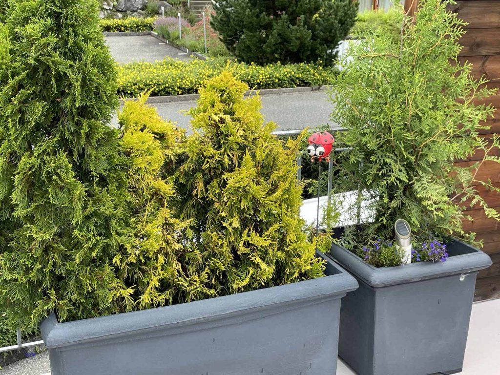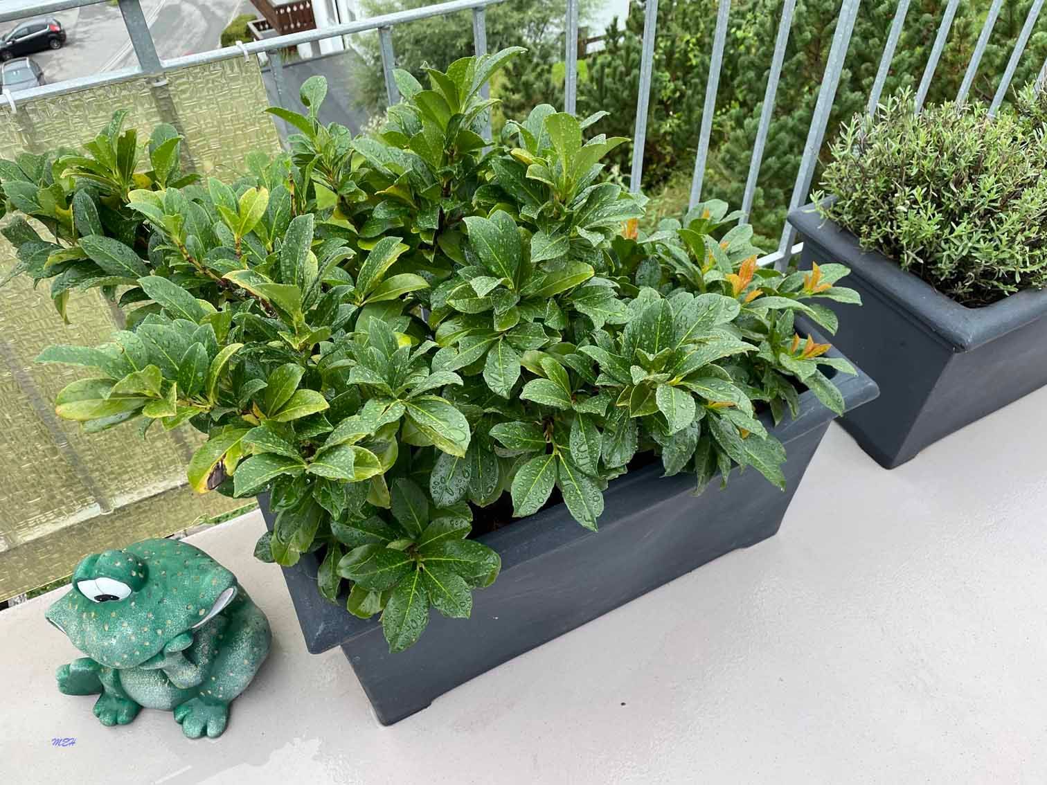 Wir haben ja immer davon gehört und gelesen, wie nass der Sommer in der Schweiz ist. Und das sieht man auf unserer Terrasse wunderbar. Unsere Pflanzen werden von niemandem gegossen. Sie überleben unsere Abwesenheit oder eben nicht. Einfach unglaublich - sogar unsere Kräuter haben die 8 Wochen überlebt! Damit haben wir nun wirklich nicht gerechnet! Und unser Kirschlorbeer, der seit Jahren mehr gelb als grün ist, ist sogar dunkelgrün!