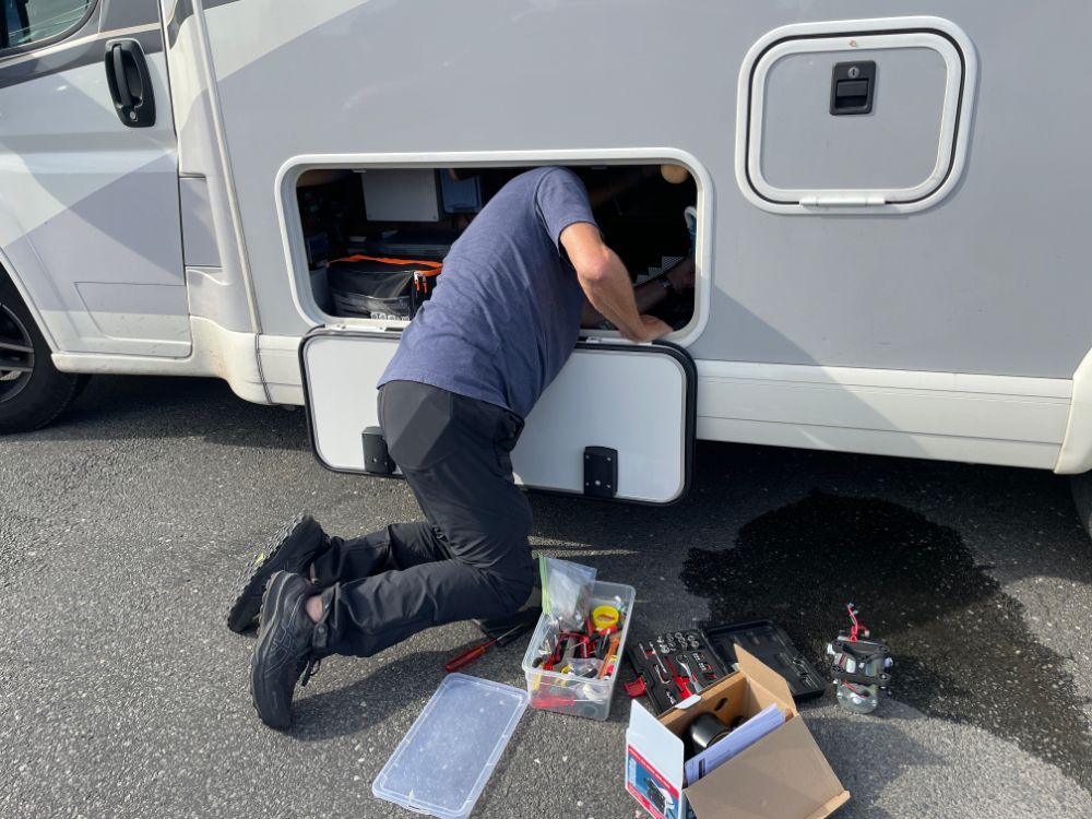 Der Einbau ist aber nicht so einfach, da bei unserem Carthago der Einbauschacht etwas klein ist.